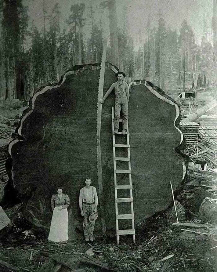 チェーンソーも無い時代にのこぎりと斧で倒してた途方もない木