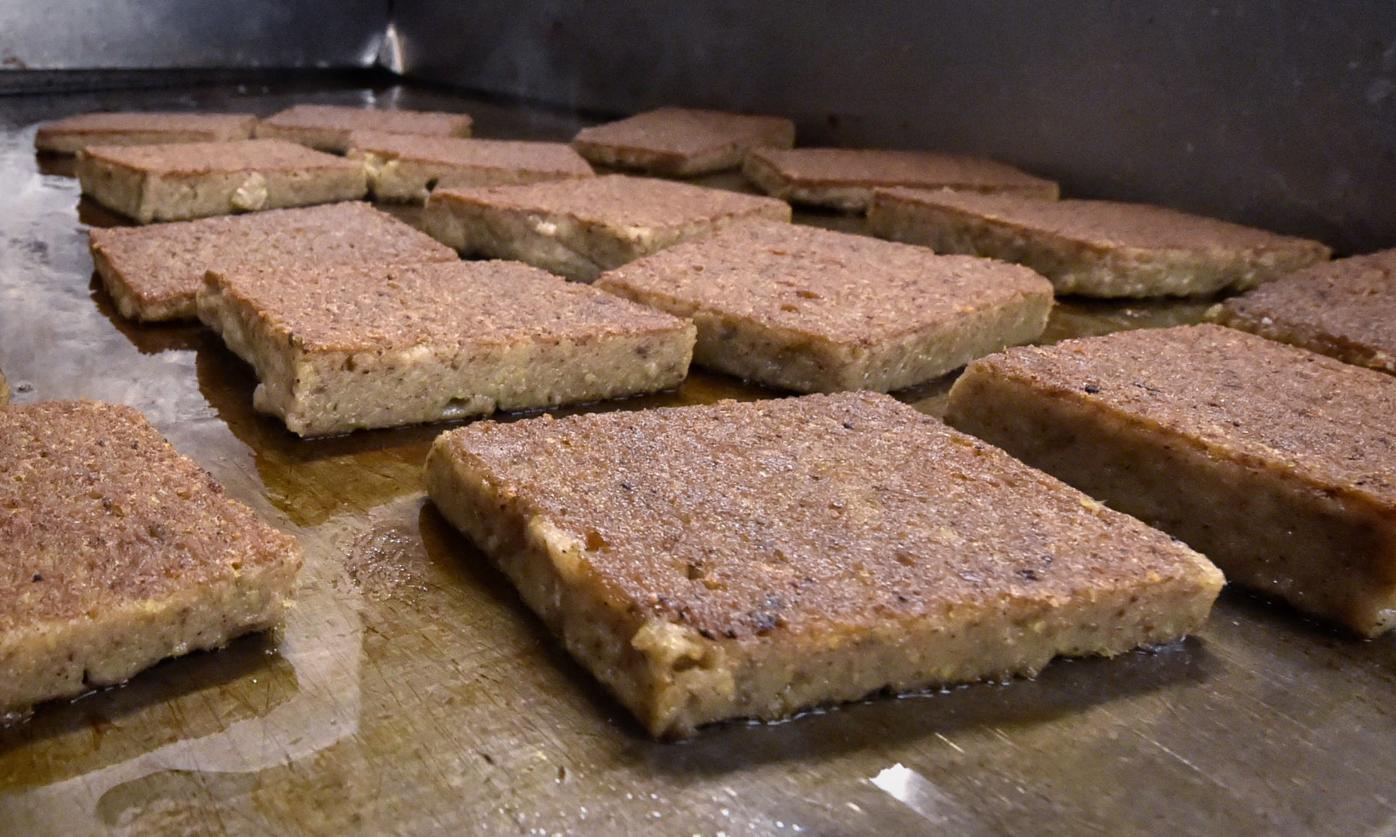 ペンシルベニア州のスクラップル(豚肉の切れ端、穀物、香辛料を混ぜて焼いたもの)