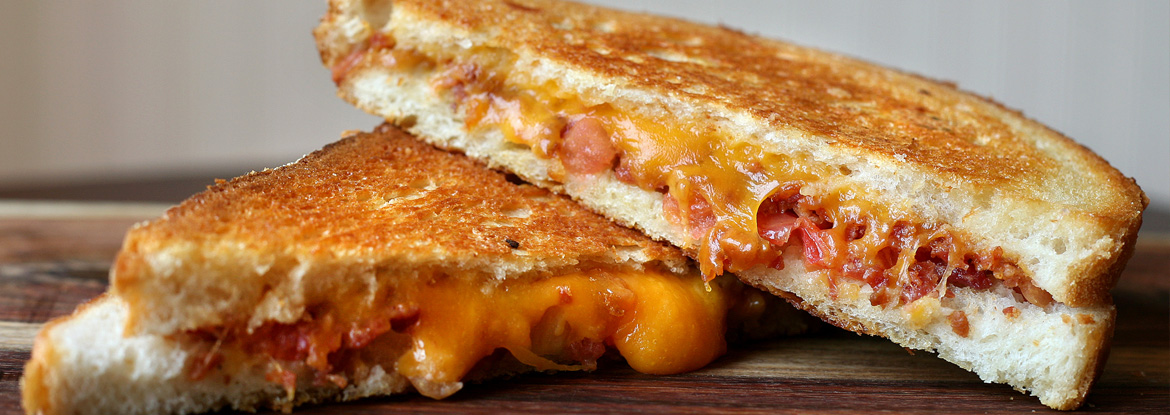 油を使いチーズ(大抵はチェダーチーズ)が溶けて両面がカリカリになるまでサンドイッチ焼くんだ
