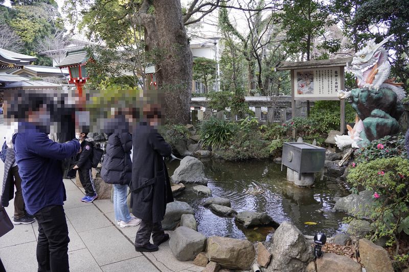 神社の隣には硬貨を投げて賽銭箱に入れると願いが叶うという場所があった