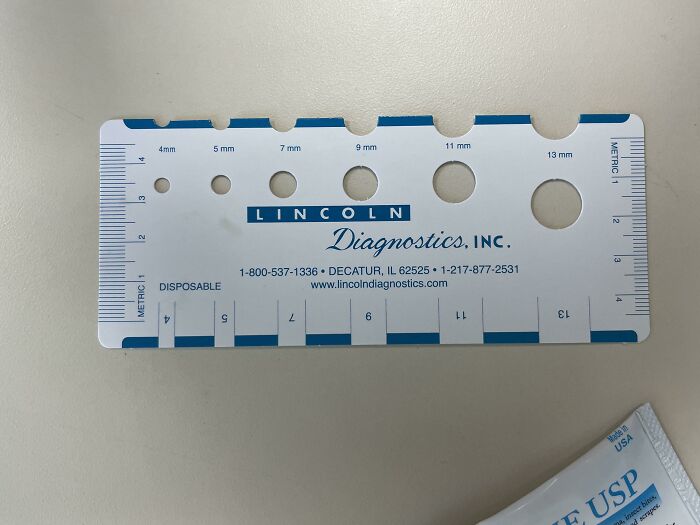 アレルギー専門医がアレルギー検査後に腕の腫れの大きさを測定する定規