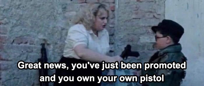 後ろにマシンガンがあるし壁にもたくさん武器が掛かってるから