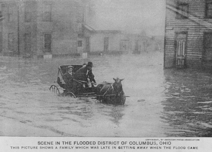 1913年のオハイオ州の洪水から脱出しようとする一家