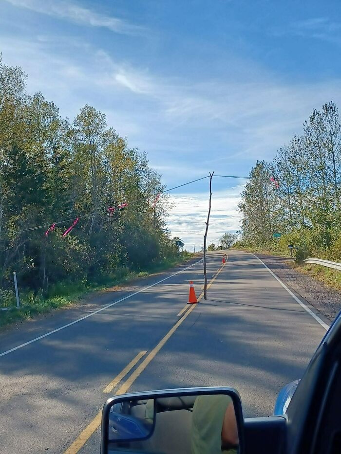 万国アノニマスさん カラーコーンもあるし電線にリボンを付いてるから安全第一だ!