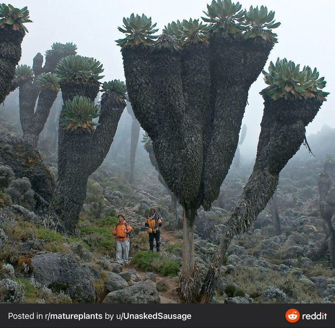 キリマンジェロの頂上付近で見つかった原始的な植物、デンドロセネキオ