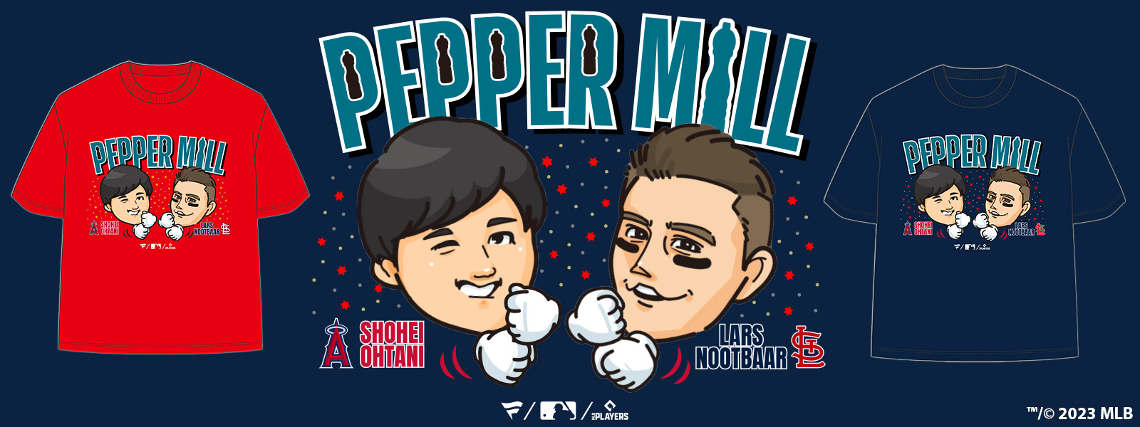 MLBジャパン公式がこんな大谷×ヌートバーのペッパーミルTシャツを発売している