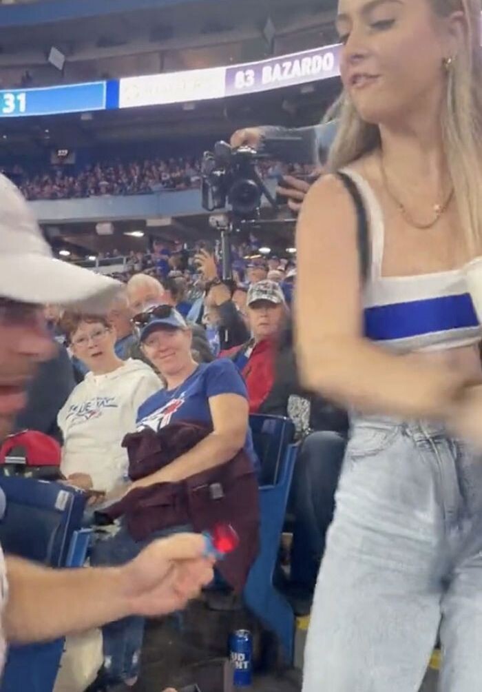野球場でキャンディの指輪でポロポーズした男、平手打ちされる