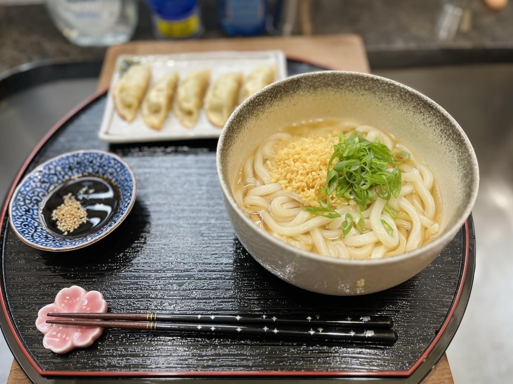憂鬱な午後に食べるたぬきうどん&ギョーザ