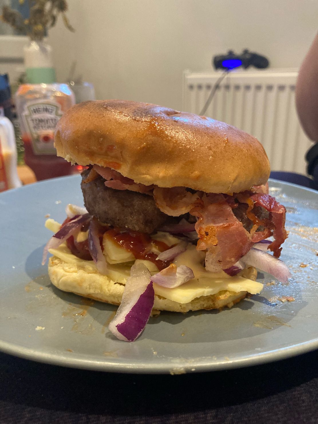 先日、安く肉を買えてどうしていいか分からかないからジャイアントバーガーを作ってみた