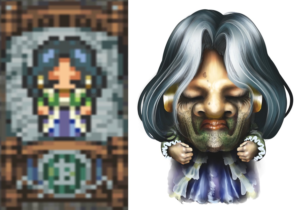 先ず天野喜孝画伯のイメージイラストありきだけどドットで表現できない部分はデザイナーの渋谷員子さんがデザインしなおす流れになってたんだっけな