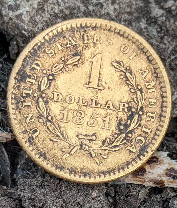 金属探知機にハマってる友達が1851年の1ドル硬貨を見つけてた