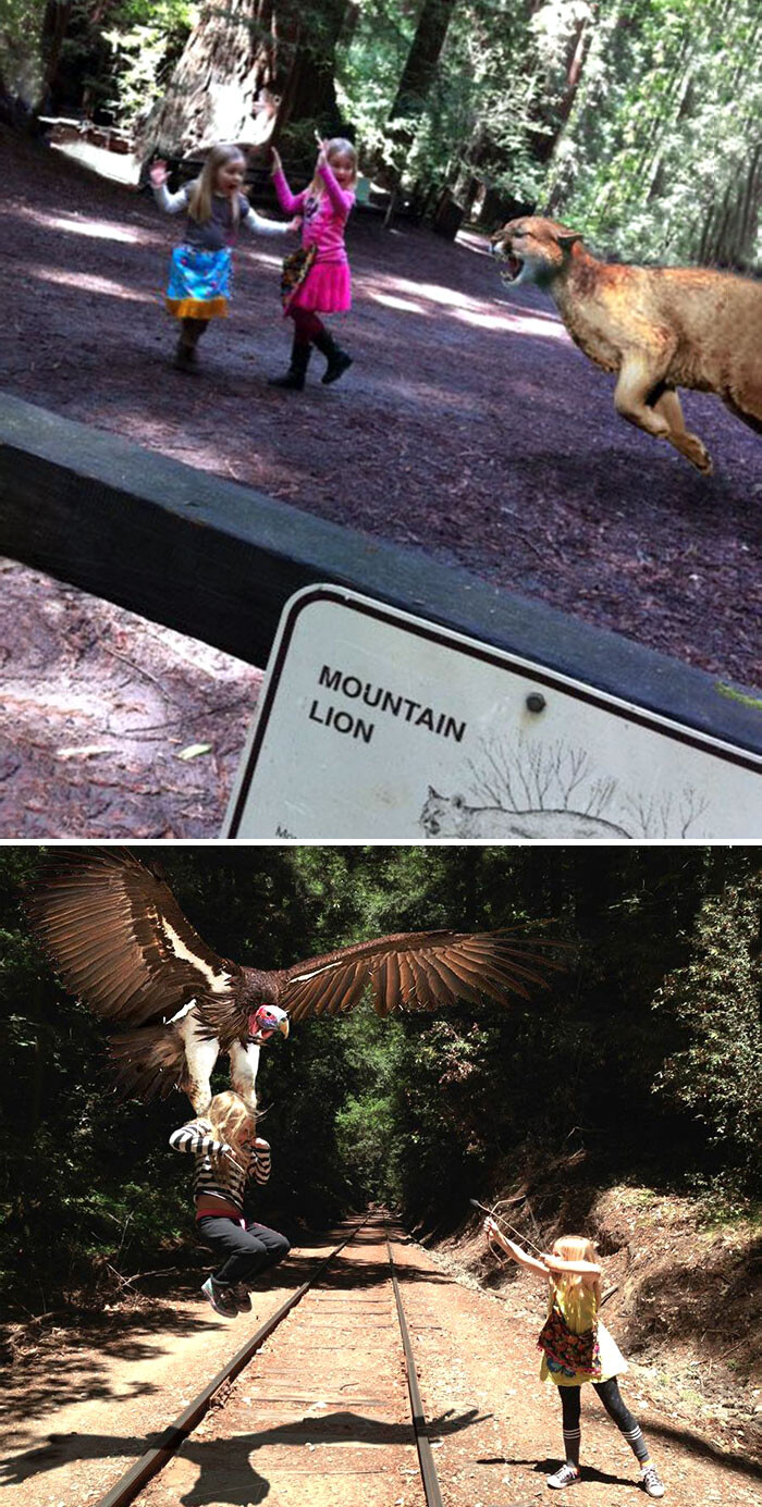 2人の娘の父親として森に探検に出かけフォトショップで冒険に連れて行った