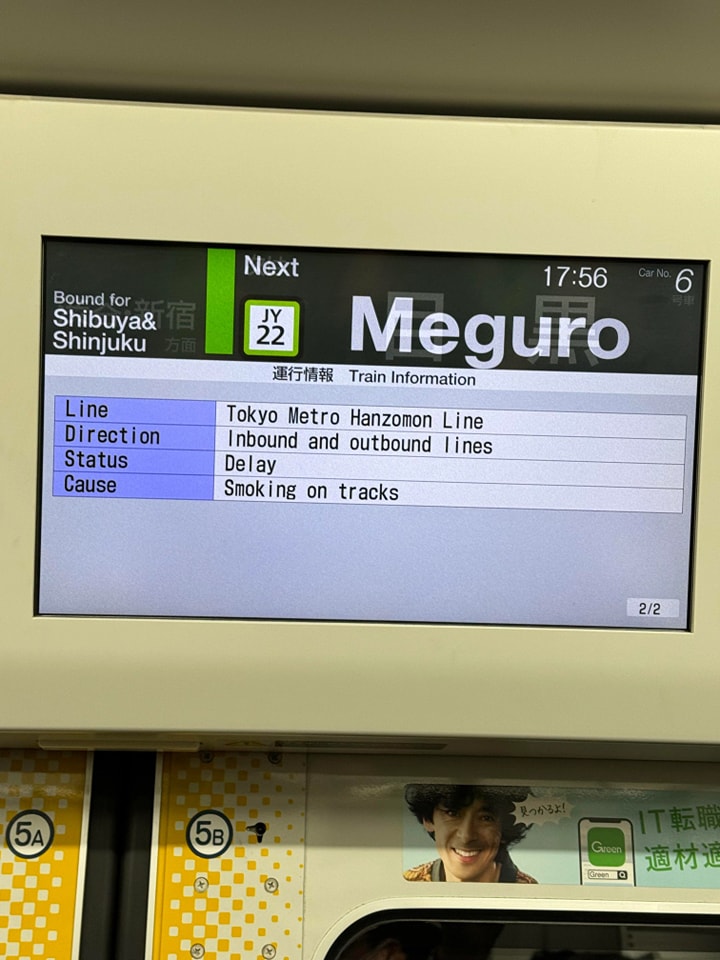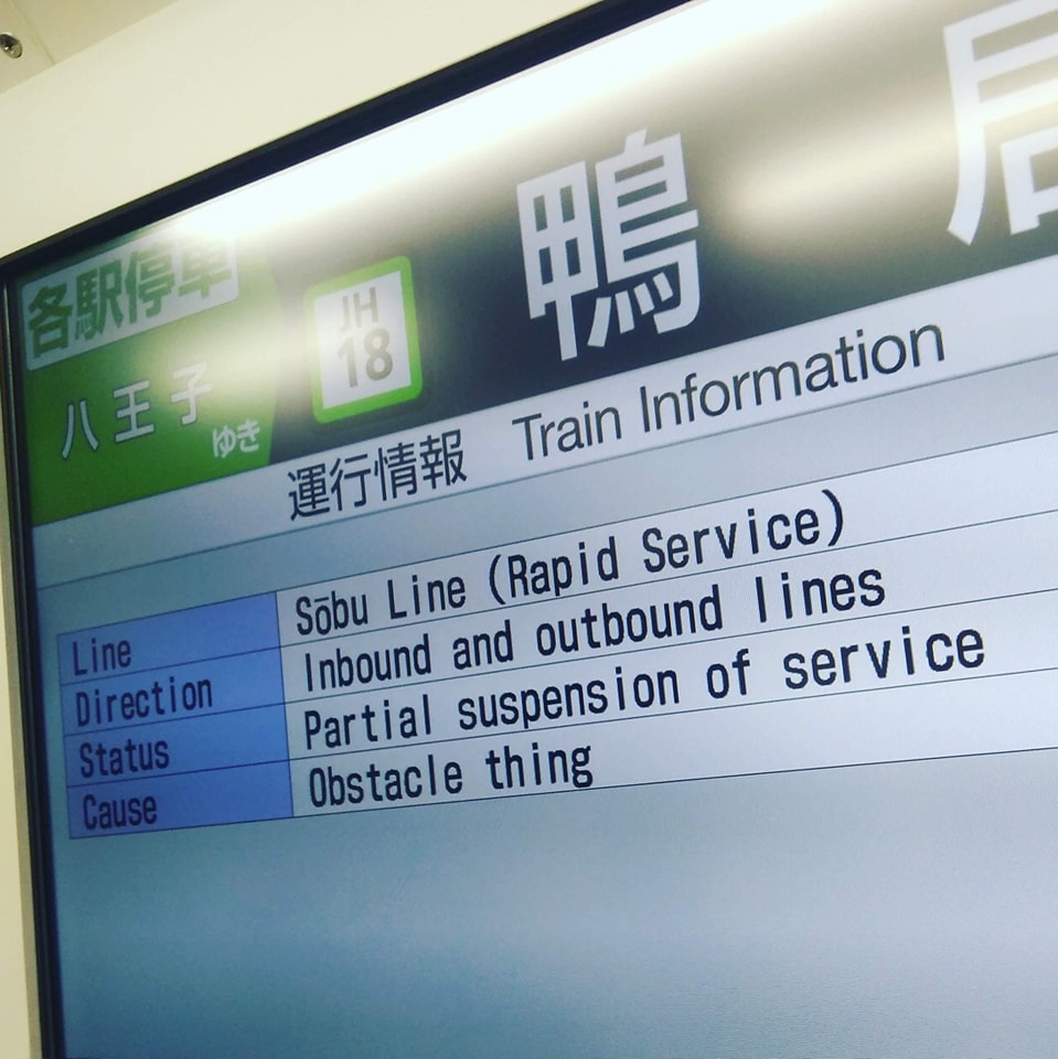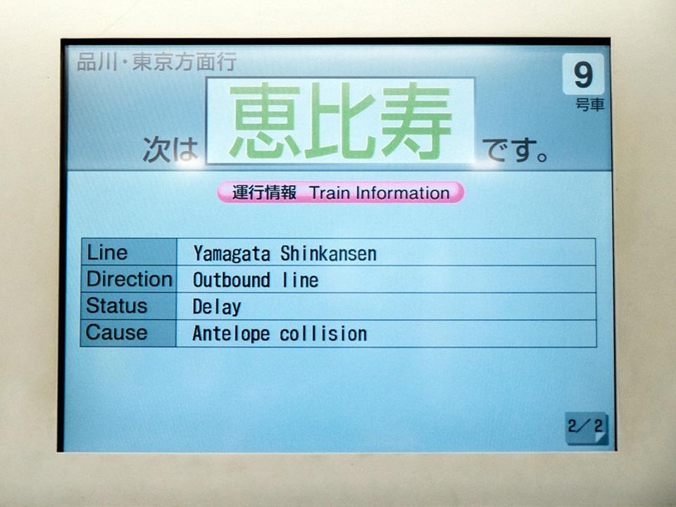 10月に日本に行った時、遅延理由:カモシカの衝突を見たのに