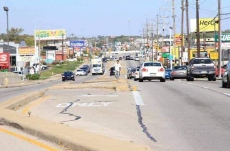 真ん中の段差は中央分離帯なのか駐車スペースなのか?