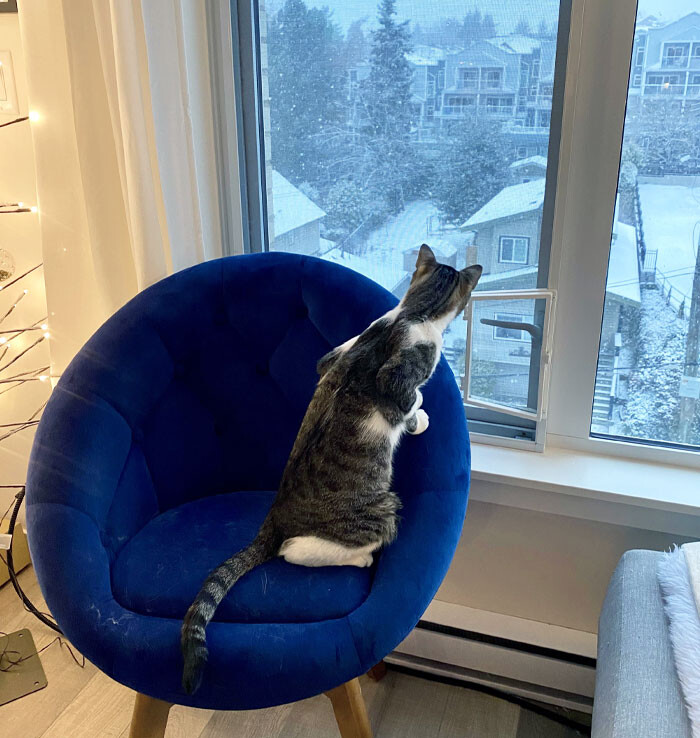 雪を一度も見たことがないギリシャから連れ帰った野良猫