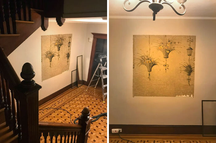 1914年に建てられた家のキッチンの壁紙がリフォーム中に出てきた