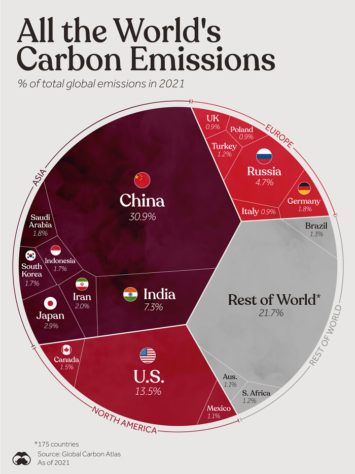 じゃあこのデータは何を隠してるかと言うと、「中国よりもアメリカの方が一人当たり炭素排出量が多い」ってこと、卑怯なデータやな