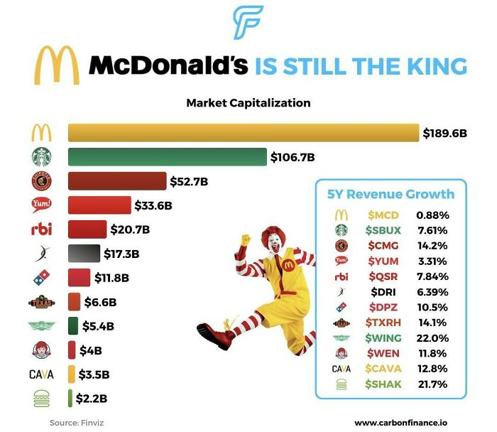 5位のPBIはバーガーキング、ポパイズ、ティムホートンズの会社だよ
