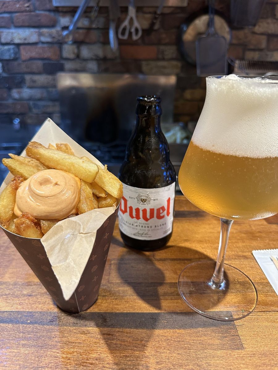 フライドポテトとビールは浅草のフリッツ・ブルージュというベルギー大使館公認の店のもの