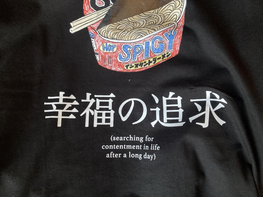 Tシャツは百人一首の文字をそのままコピーしてる、文字の一部は変体仮名で書かれてる
