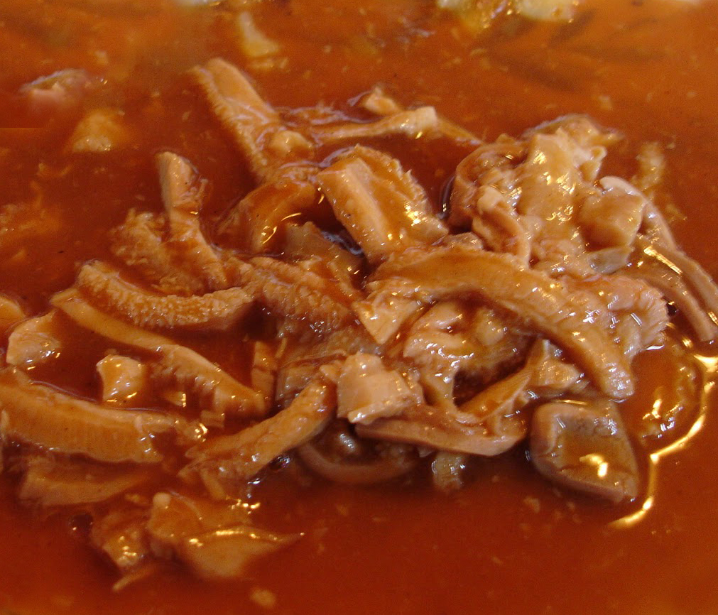 牛の胃袋を切ってシチューにしたもので極めて不快