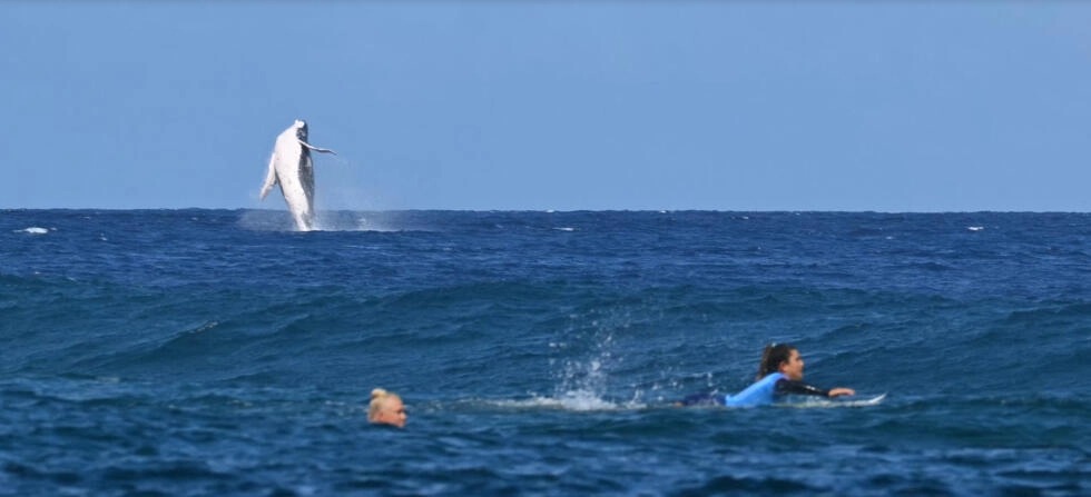 サーフィン中に現れたクジラ