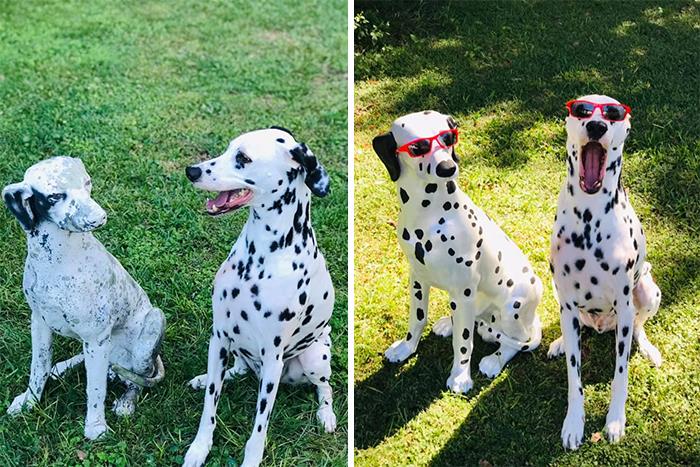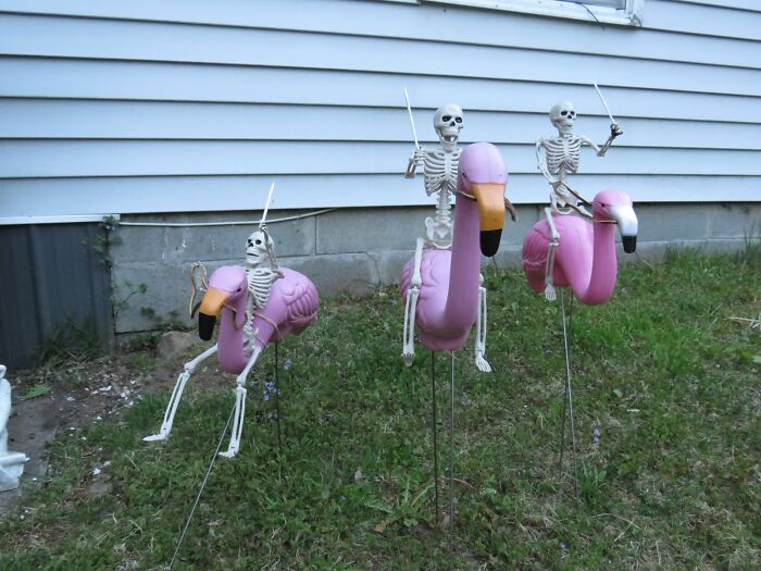 ヤードセールで買った庭に飾るフラミンゴ&フリマで去年買ったドクロ