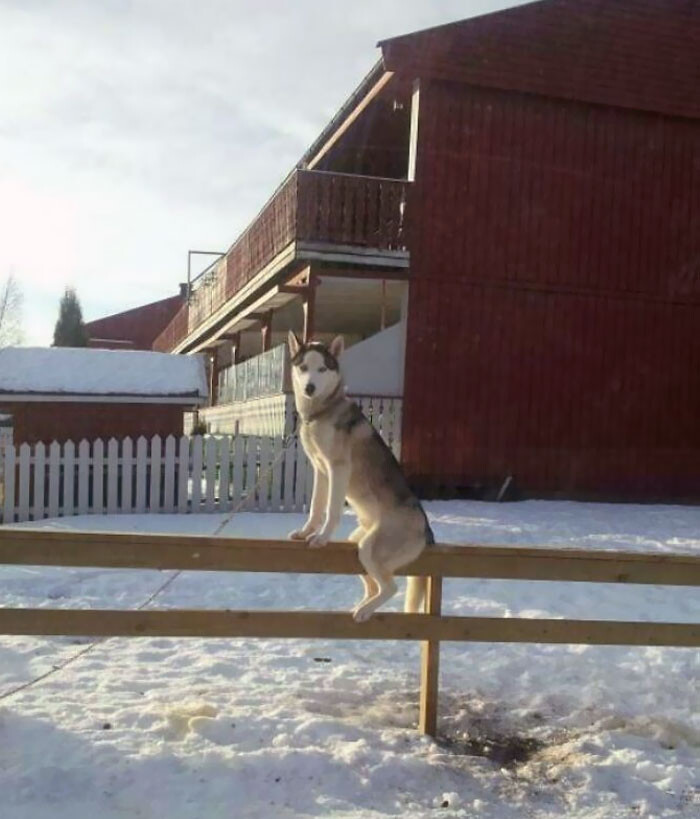 お隣さんの犬はいつもこのフェンスの上にいる