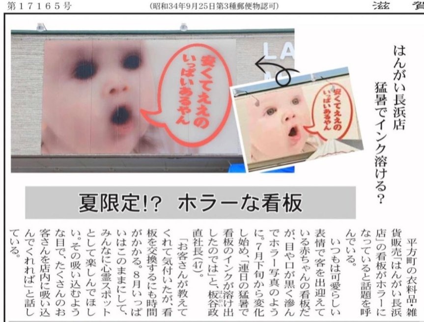 記録的な猛暑が原因でホラーになった日本の看板の赤ちゃん