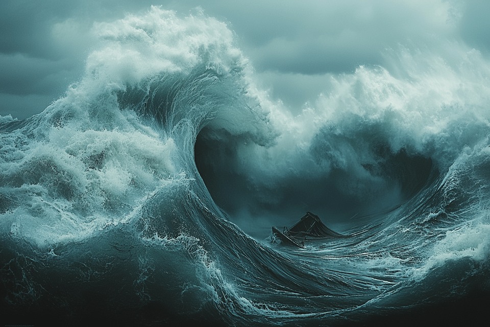 津波じゃないけど、ジョージクルーニー主演の「パーフェクトストーム」かもしれない
