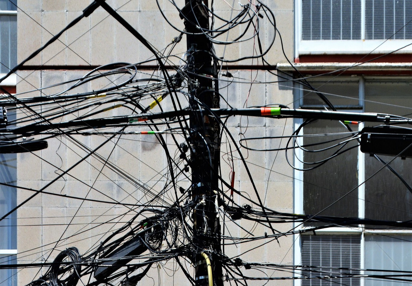 ぐちゃぐちゃになってるの、電力線じゃなくて通信線なのよ