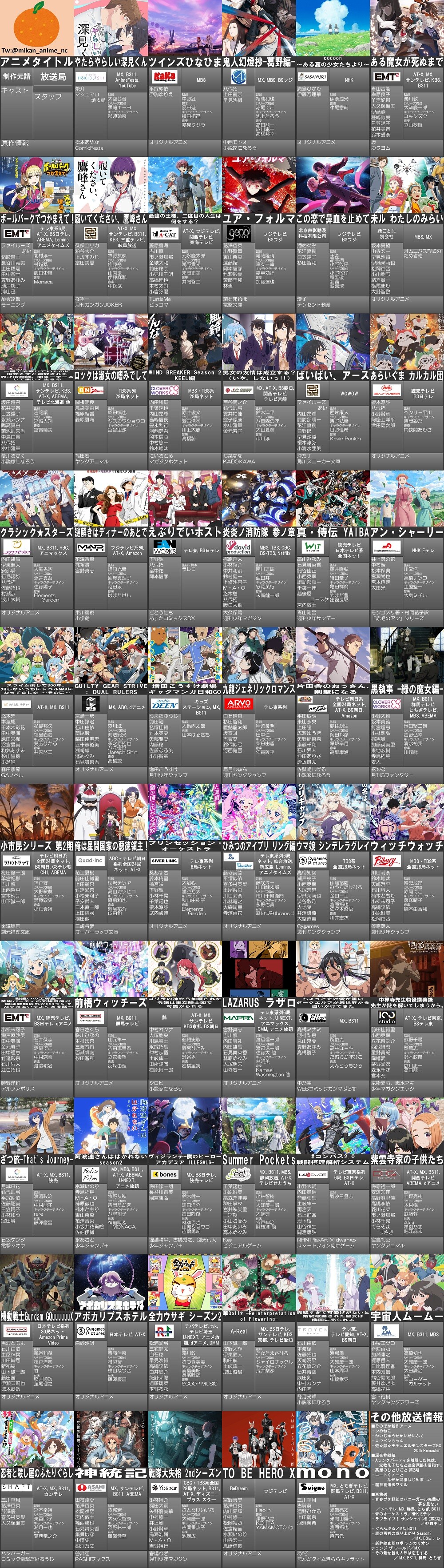 小粒というか全体的に薄い観る前からそこまで面白くないのが分かる、数年前のアニメ欄がバンドブームならここ最近はAKBメンバー並べたような感じ