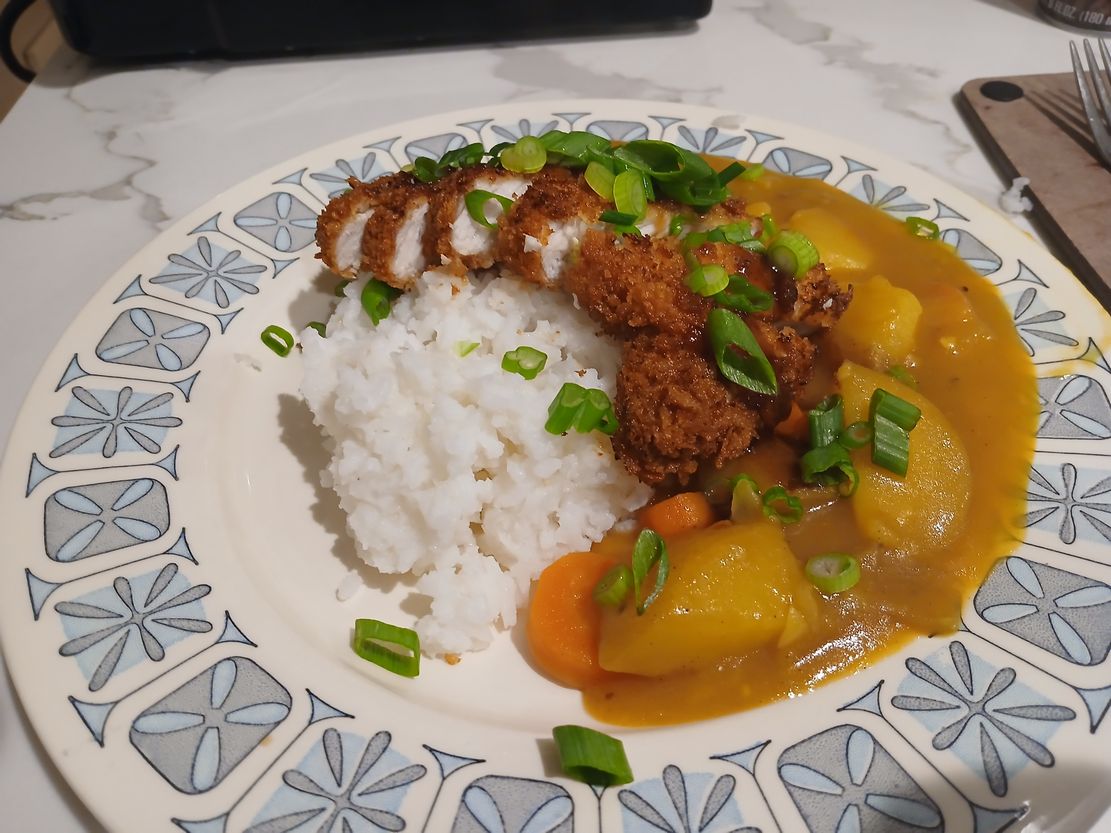 作った人の参考物には緑色の何か乗ってたんだろうなカツカレーだとグリンピースとかなのかな