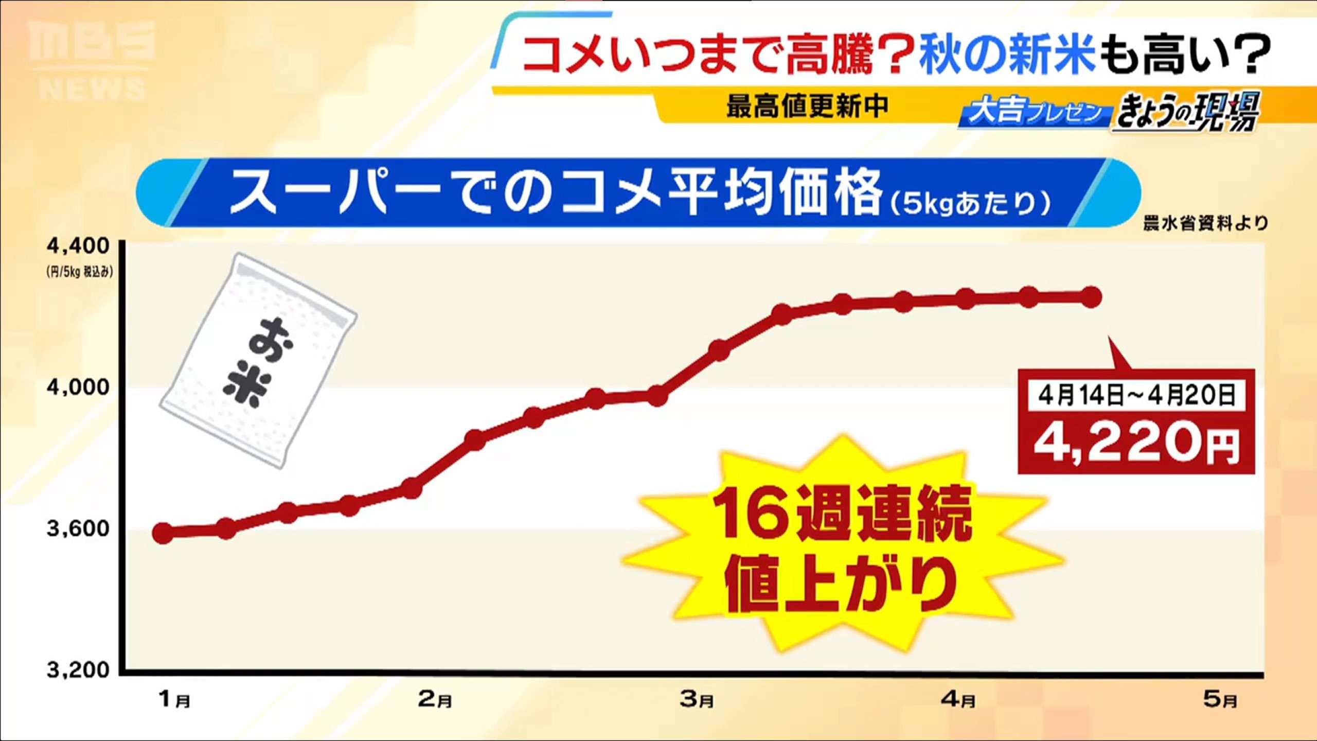 日本では1年で米の価格が倍になってる