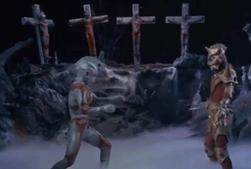 ご存じかもしれないけど、ウルトラセブンがガッツ星人に敗北したときは「イ」みたいな形の磔にされて、これは異星人が地球のキリスト教みたいな十字架で磔にするとかおかしいだろてことでそうなった