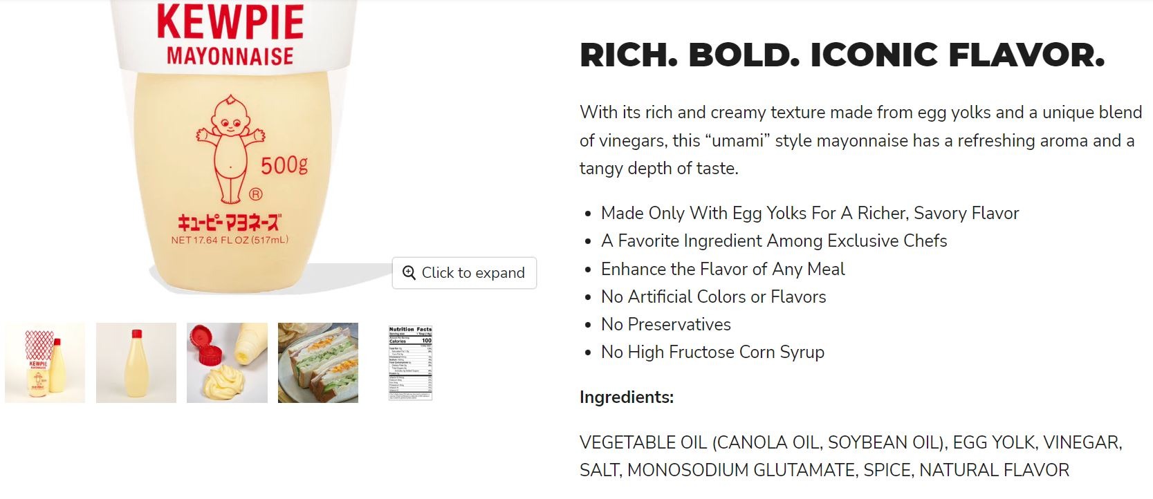 キューピーは自分が見た中で原材料に水を使ってない数少ないマヨネーズブランドの1つだ