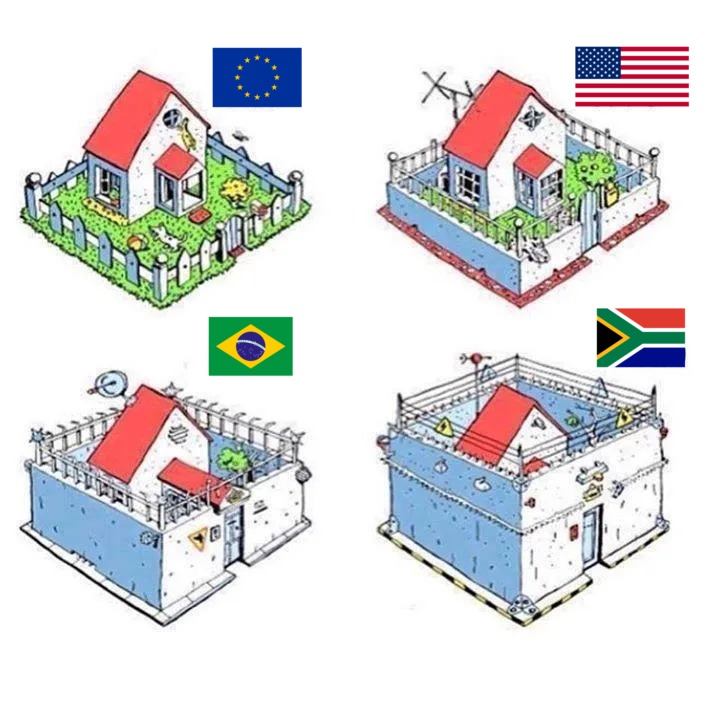 EU、アメリカ、ブラジル、南アフリカの住宅の違いという画像が海外で話題を集めていたので反応をまとめました。