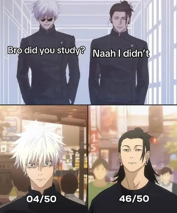 俺は学科で一番高い点数、友達は自分の半分くらいの点数だった😂😂😂