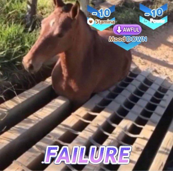 馬が柵にぶつかる動画を見つけて”トレーニング失敗”にすればいい