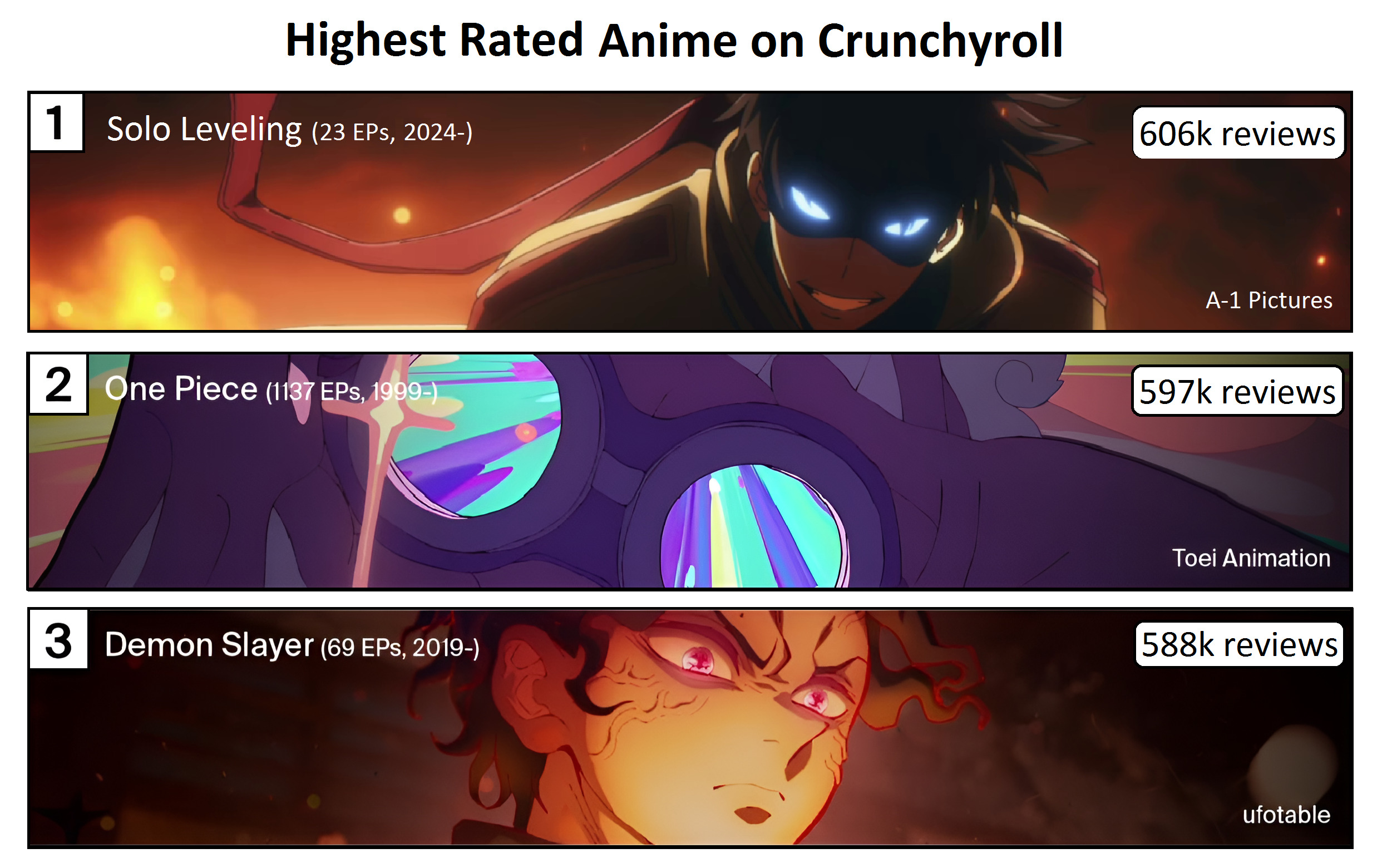 進撃も評価は高いだろ。話数が多いのとアンチから低評価爆撃食らってるけどね