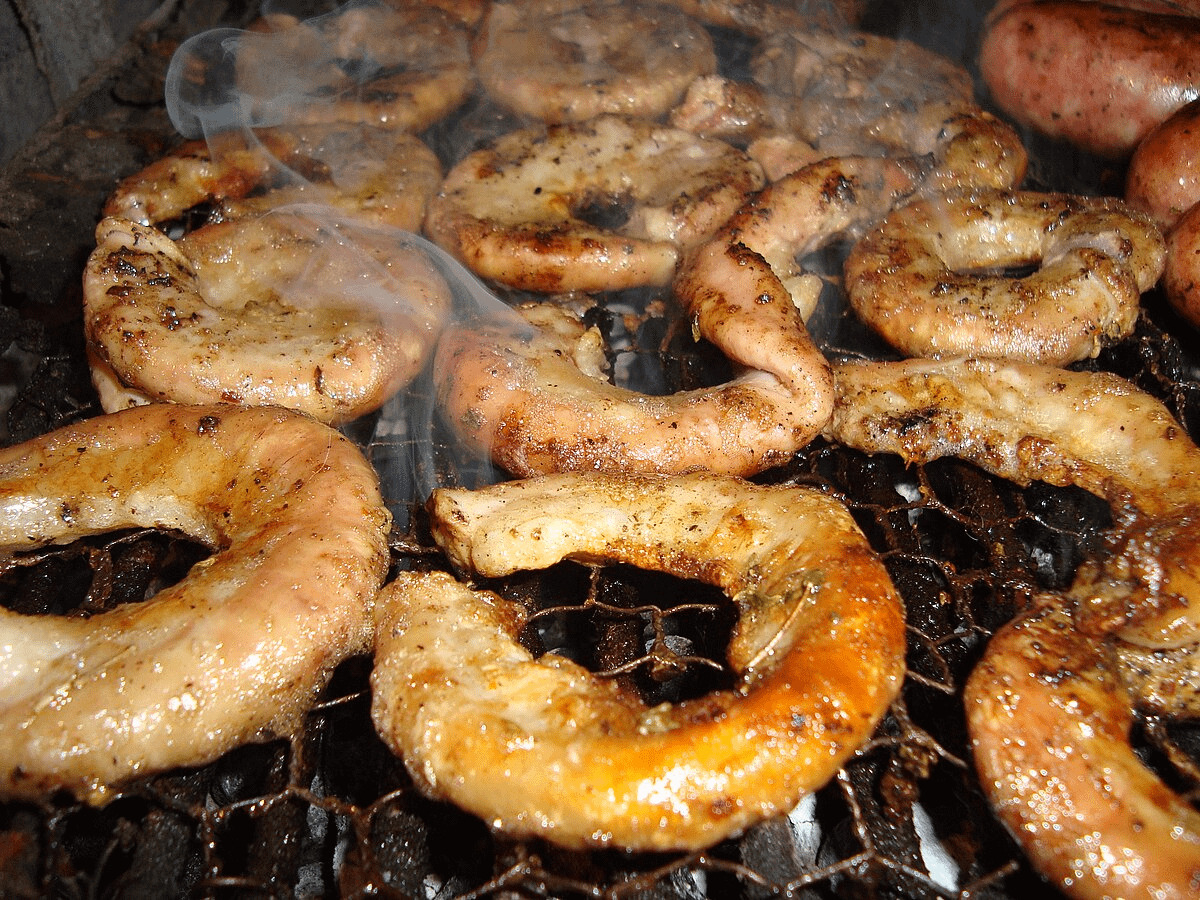 羊の腸を串に巻いて焼き、普通は小さく刻んでパンに挟んで提供される