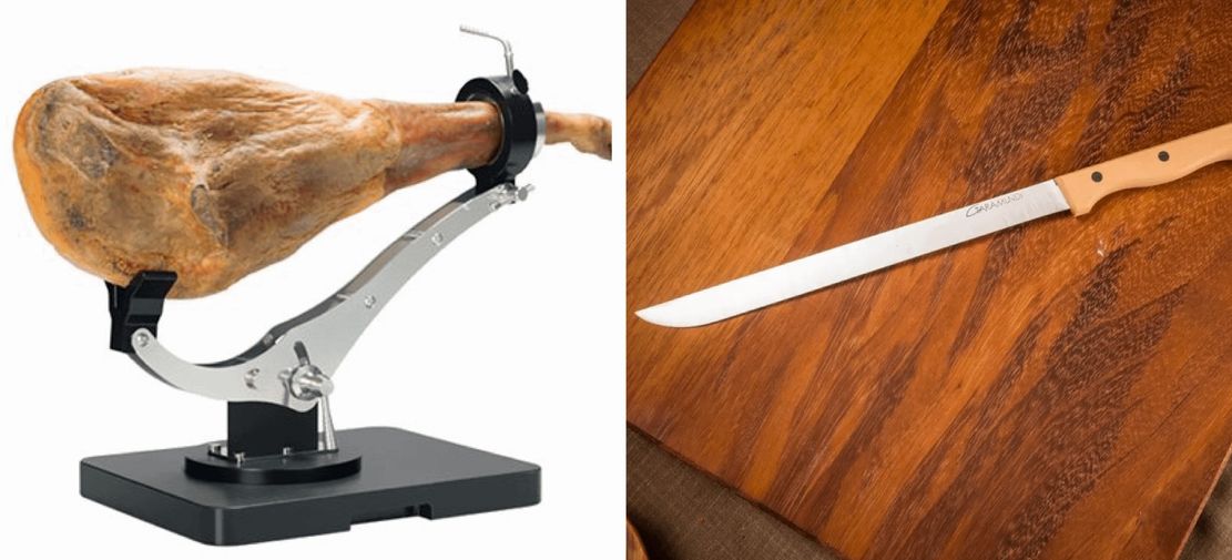 スペインでは生ハムの原木を買って自分で切るのが一般的
