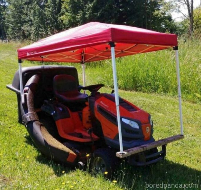 低予算の芝刈り機を作ろうとしている近所の人
