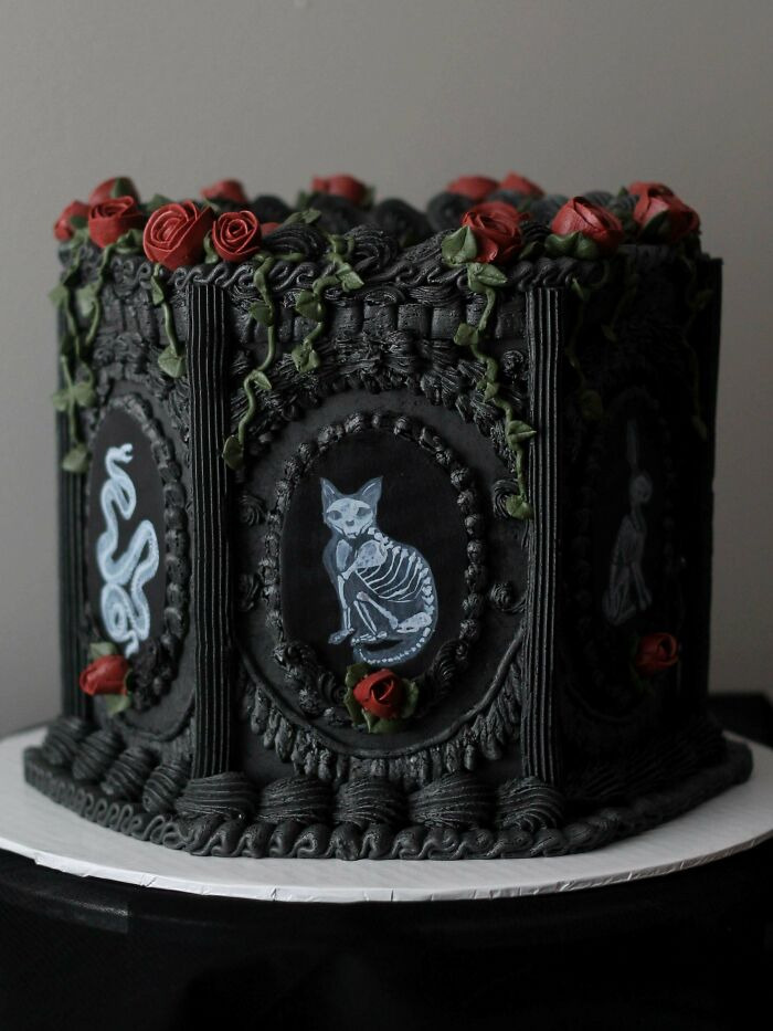 ハロウィンの雰囲気たっぷりの動物の骸骨ケーキ