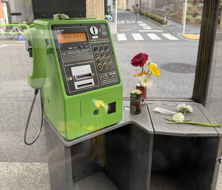 1週間以上前から神田周辺で花が飾られた電話ボックスを撮影してる人をよく見る