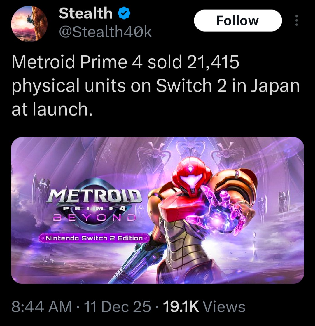日本のメトロイドプライム4ビヨンドの売上が初動で2.1万本だったらしい(正確には21,415本)