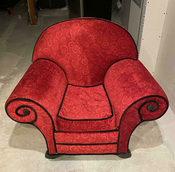 赤いソファはスーツ着てヴィランごっこができるな