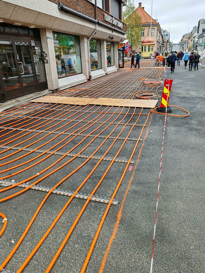 ノルウェーで敷設中のロードヒーティング