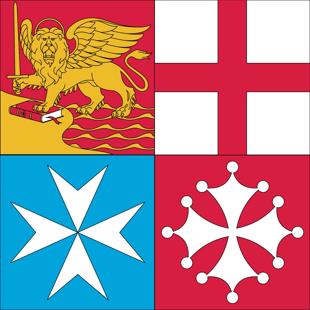 旗ではないけど海外で展開する時は昔のテンプル騎士団のシンボルであるキリスト十字を使う