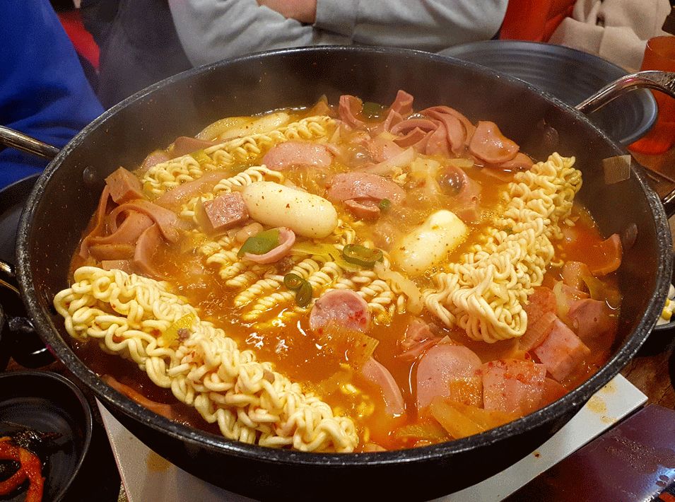 現地のプデチゲはうまくない…日本の鍋料理感覚とは違う。コチュジャン汁にインスタントラーメンとかいろいろぶち込んだ悲しい料理。